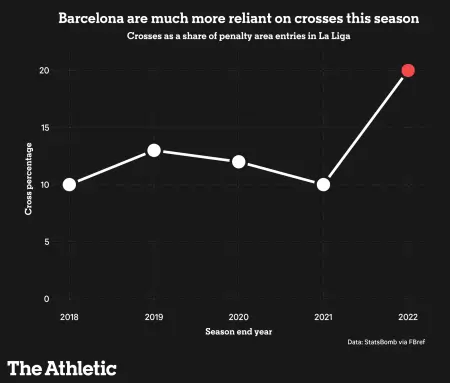 საჯარიმოშიც მოუწევს მაღალ ბურთებზე ბრძოლა, მესის წასვლის შემდეგ, „ბარსას“ ჩაწოდებების მაჩვენებელი ძალიან გაზრდილია. როგორც ფოტოზე ხედავთ.