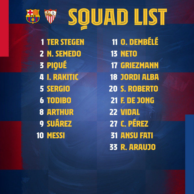 ტრავმა მოირჩინეს და განაცხადს დაუბრუნდნენ ჟორდი ალბა და ანსუ ფატი. განაცხადში ასევე მოხვდა "ბარსა ბ"-ს ცენტრალური მცველი არაუხო.