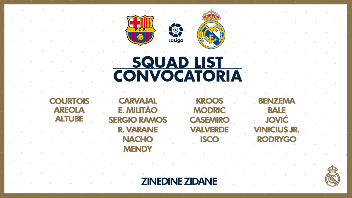 "კამპ ნოუზე" ტრავმების გამო ვერ ითამაშებენ მარსელო, ხამეს როდრიგესი, მარკო ასენსიო, ედენ აზარი და ლუკას ვასკერი. განაცხადს მიღმა მწვრთნელის გადაწყვეტილებით დარჩნენ ბრაიმ დიასი, ალვარო ორდიოსოლა და მარიანო დიასი.