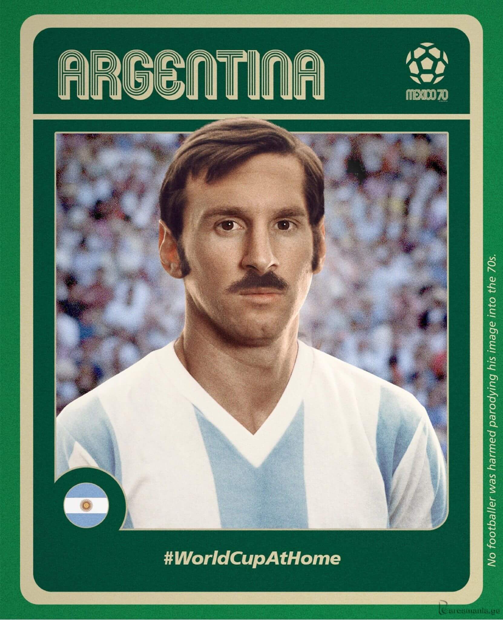 ფიფა-ს მსოფლიო ჩემპიონატის ოფიციალურმა ფეისბუქ გვერდმა ამ დღესთან დაკავშირებით სამახსოვრო მარკები გამოაქვეყნა, რომლებზეც ფეხბურთის თანამედროვე ვარსკვლავები 1960-70-იანი წლებისთვის დამახასიათებელ სტილში არიან გამოსახულნი. მათ შორის, რა თქმა უნდა, ლიონელ მესიცაა, რომელზეც ვერ ვიტყვით, რომ ულვაში და ბაკენბარდები არ უხდება.