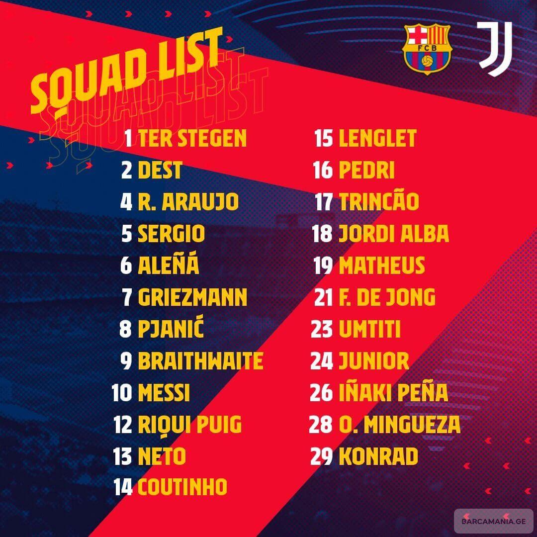 "ბარსელონა" დღეს, "იუვენტუსთან" გასამართი მატჩისთვის, გუნდის განაცხადს აქვეყნებს.