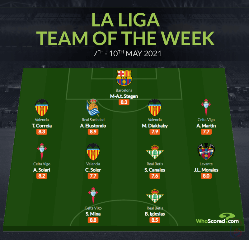 WhoScored-მა ლა ლიგის კვირის სიმბოლური გუნდი შეადგინა, რომელშიც "ბარსელონადან" მხოლოდ ერთი ფეხბურთელი მოხვდა.