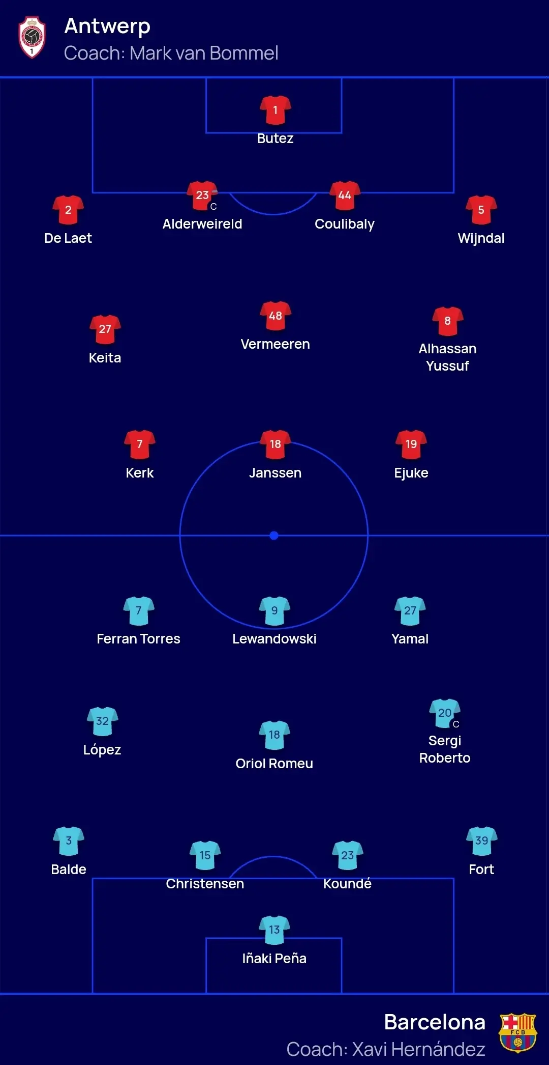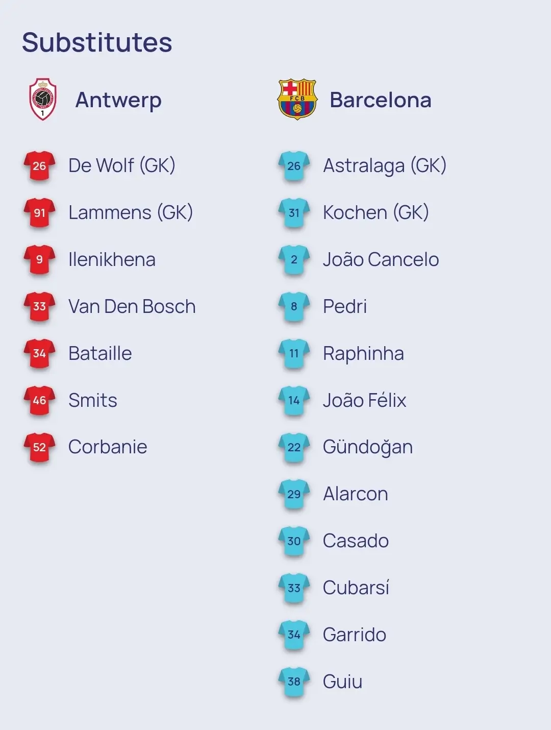 ანტვერპენი 🆚️ ბარსელონა | სასტარტო შემადგენლობები